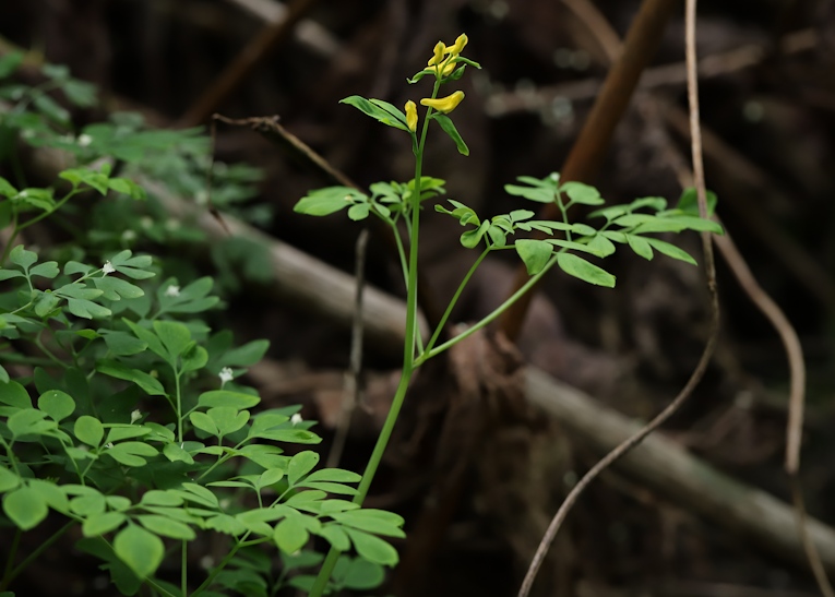 ナガミノツルケマンの距は下に湾曲するようですがチドリケマンは上に反るようです。北海道固有種。